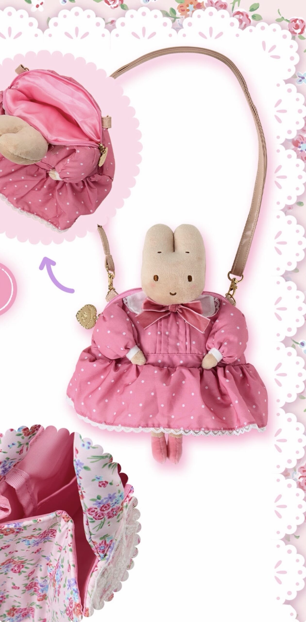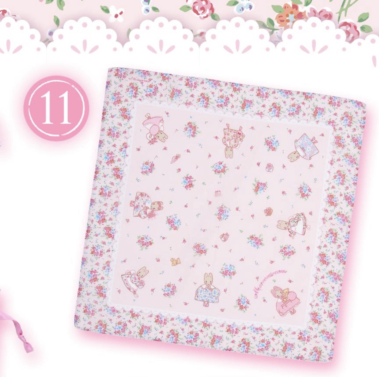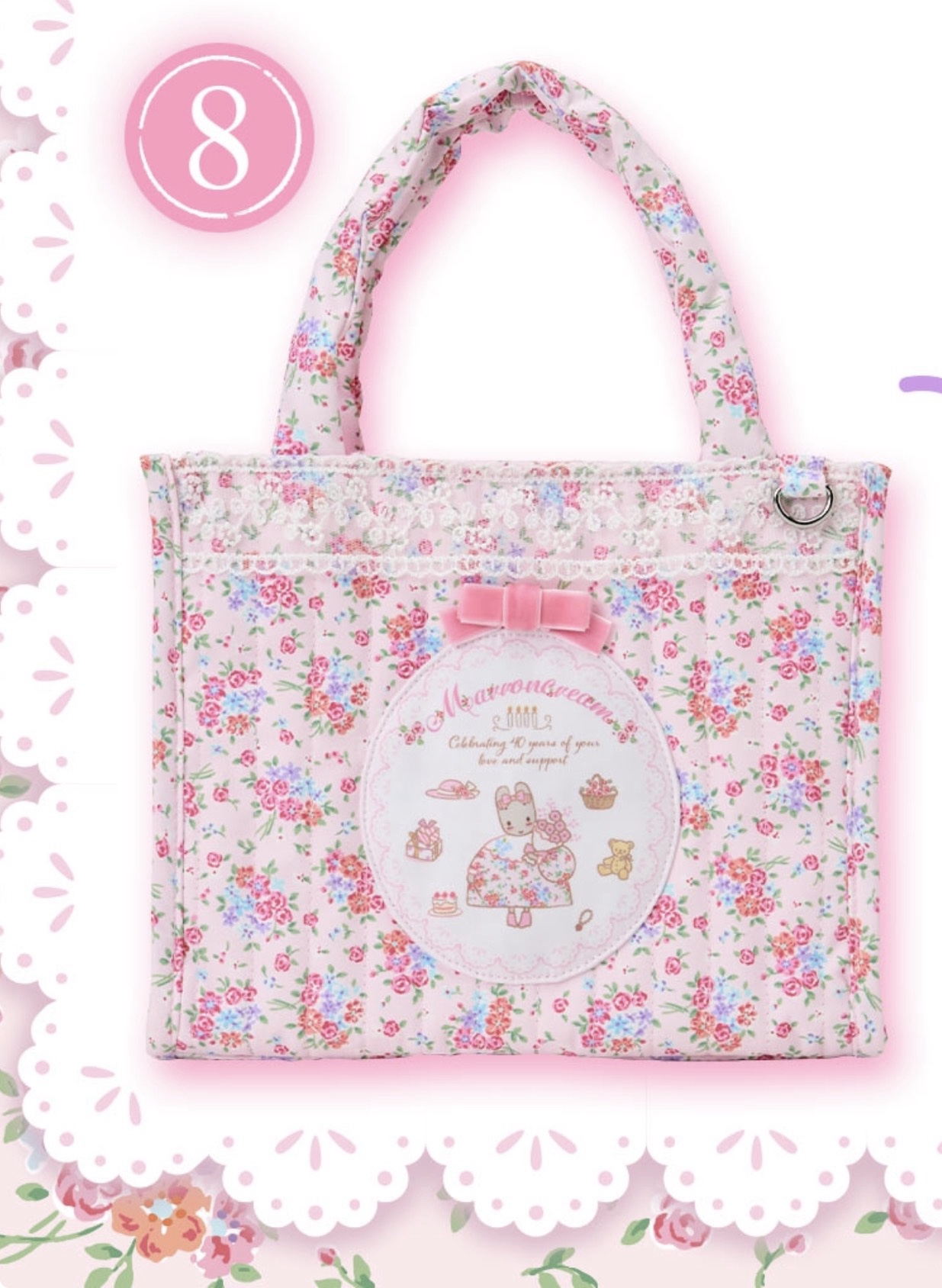 栗子奶油茉莉兔玩偶, 紫色挂件, 白粉色挂件, 蛋糕架, 杯子, 甜品碟套装, 纸巾包, 托特包, 斜挎包, 束口袋两个, 方巾, 梳子镜子套装, 胸针套装, 贴纸套装, 玩偶胸针盲盒随机一个