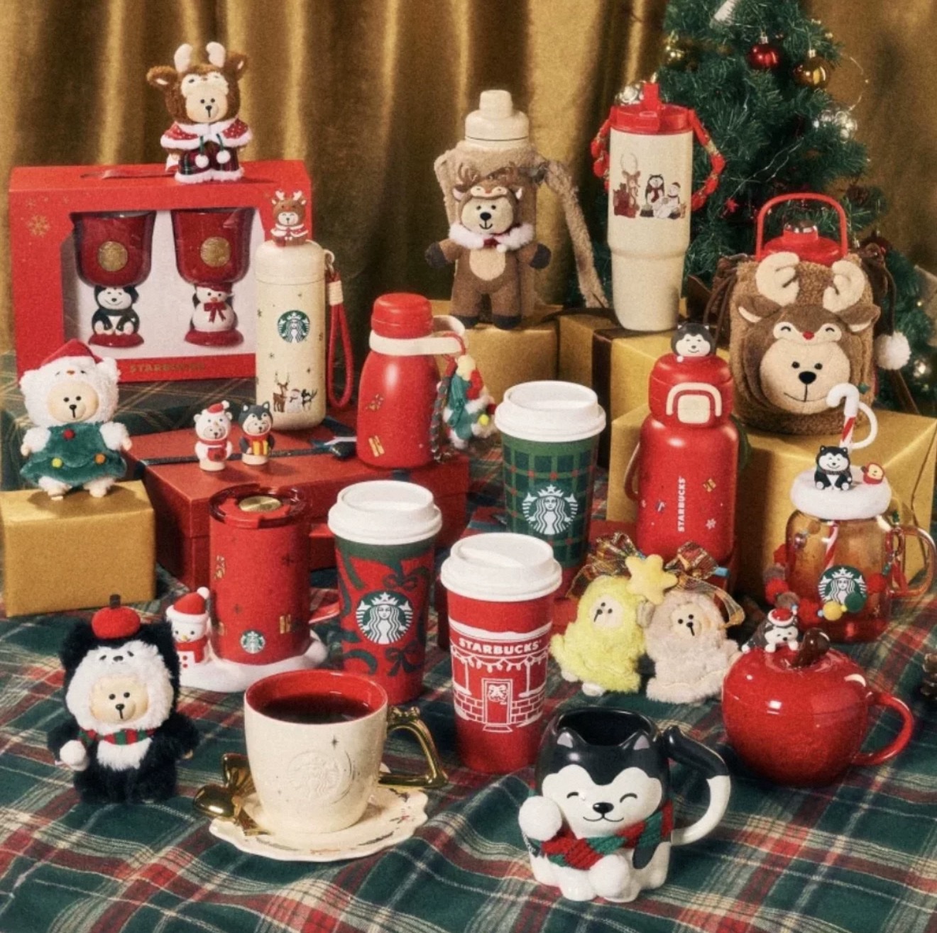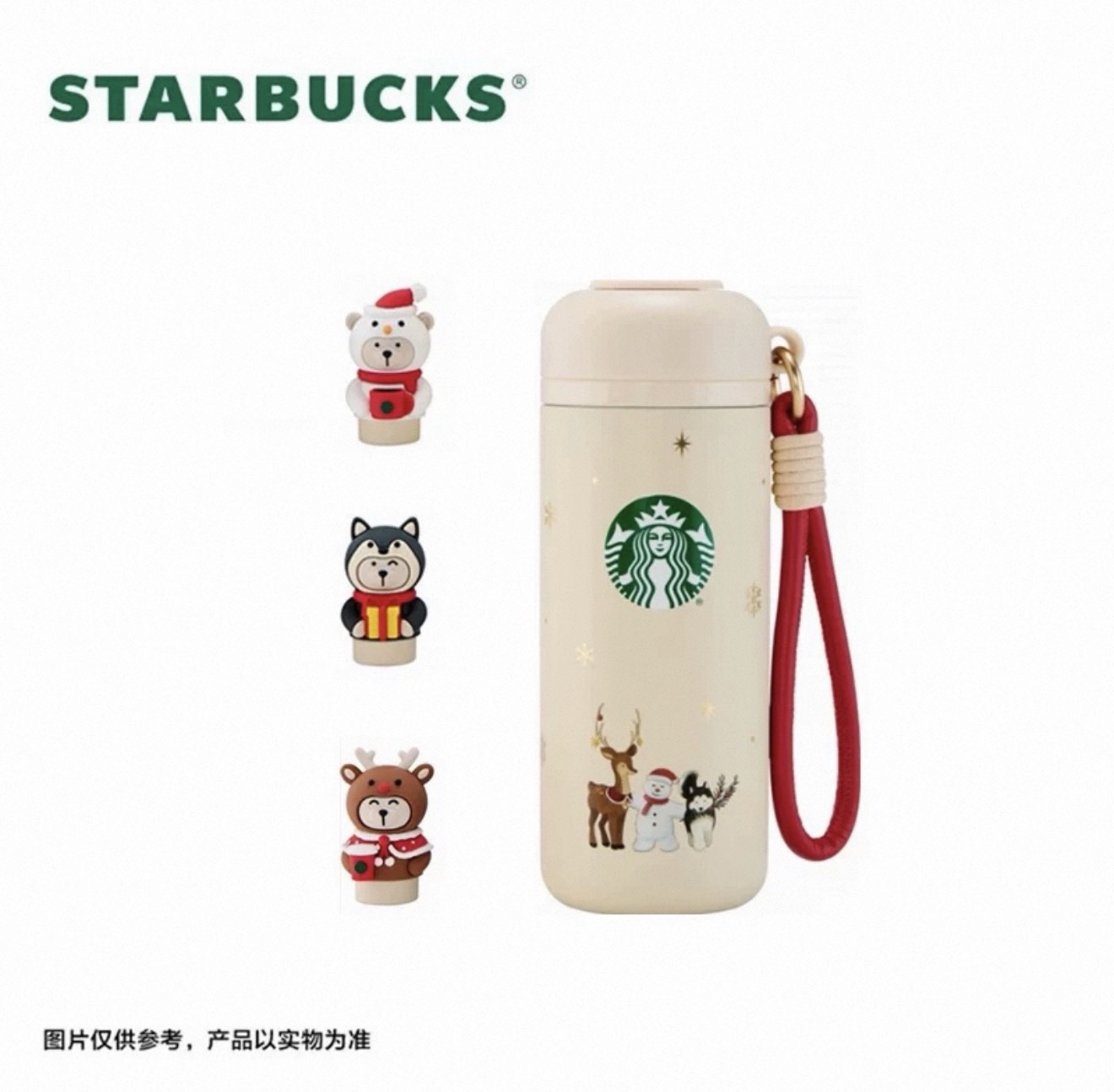 小熊铃铛挂件(无盒), 哈士奇熊店长挂件(无盒), 麋鹿熊店长挂件(无盒), 雪人熊店长挂件(无盒), 铃铛把手马克杯碟套装, 哈士奇马克杯, 金属铭牌高脚马克杯, 600ml梅森杯配挂饰, 430ml圣诞绿杯随行杯, 430ml圣诞红色随行杯, 430ml红绿丝带不锈钢随行杯, 800ml双饮口不锈钢随行杯, 414ml不锈钢杯礼盒, 550ml哈士奇装饰不锈钢杯配毛绒挂件, 414ml奶瓶造型保温杯配毛绒彩球, 860ml不锈钢杯配麋鹿熊店长抽绳杯套, 620ml麋鹿熊不锈钢随行杯, 500ml雪人不锈钢杯, 400ml红苹果造型马克杯